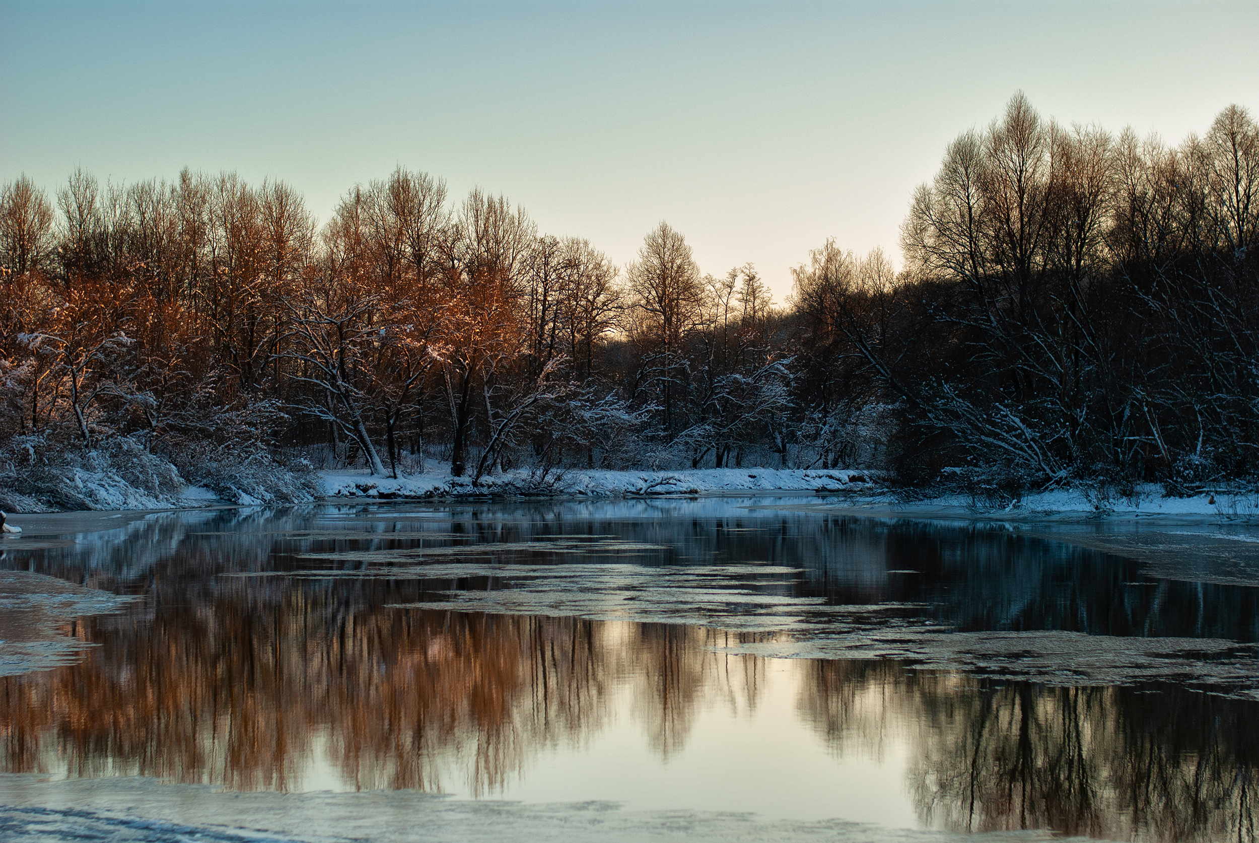 О том, что сейчас зима, говорит только 15-сантиметровый лёд на озере, снега лишь пара крупинок валяется.