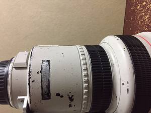 Это еще очень хорошее состояние. У Кенона большие стекла белые. Телевиками снимают на улице. И на старых объективах стирается краска. Если черный объектив можно подкрасить маркером, то с белым, светло-бежевым, да еще со структурным покрытием, ничего так просто не сделаешь.