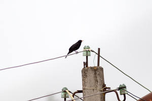 Слева от птицы начинаются фиолетовые ХА на проводах (переднее боке), справа (заднее боке) - зеленые. И начинаются точно на одном и том же расстоянии от птицы. В резкости и без ХА - только сама птица.