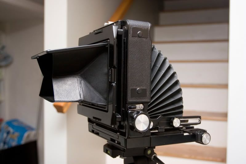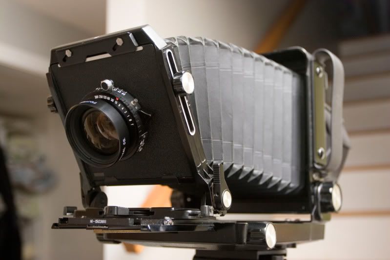 С такой камерой будет очень неудобно работать с шириками для 4х5. Минимальное растяжение меха - 75 мм. Т.е. даже для 90 мм, я подозреваю, нужна рецессинговая доска. С подвижками будет туго. Вообще, со всей оптикой для 4х5, кроме длиннофокусной, будет туго с подвижками.
