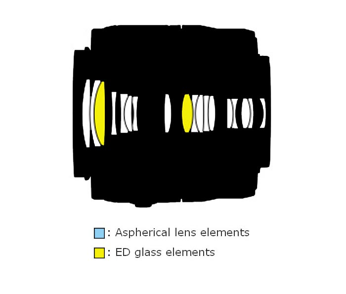 Оптическая схема: 6 элементов в 5 группах
