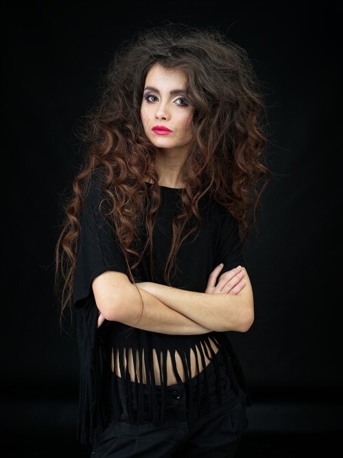 Снято-то нормально. Цыпу, конечно, можно было бы найти и посвежее (кстати, что за страшные морщины у нее поперек всего лба? это что надо делать, чтобы такое заработать?). Но комбинация модель - антураж - оборудование - техника съемки почти безупречна. Можно в учебник вписывать.