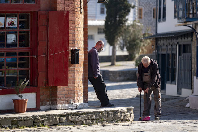 Площадь прорезает главная улица. Тут находятся магазинчики - от съестных и промышленных припасов до литературы и религиозных принадлежностей. В одном магазине у окна старый монах сидит у старой швейной машинки "Зингер"...