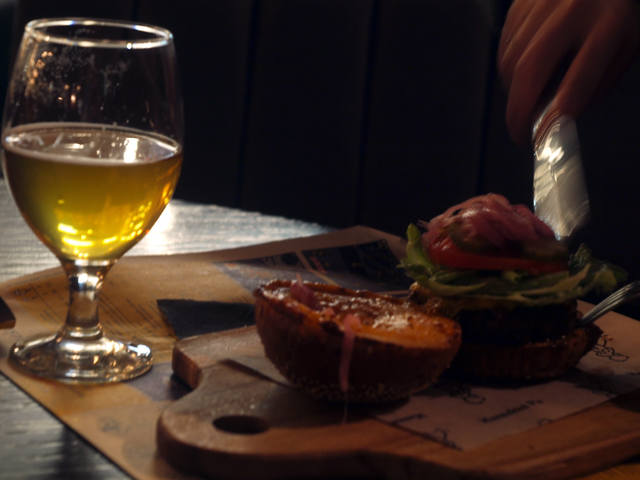 вот зашли в какой то паб на невском,сожрали бургер с мраморной говядиной.запили пивом..