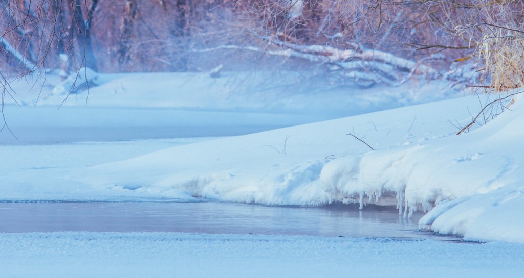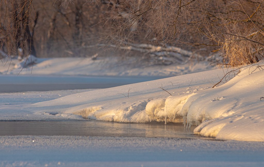 В России множество лесных речек и снега, там пока еще много, пройдитесь на лыжах днем, а потом выжидайте интересную для фото погоду…
