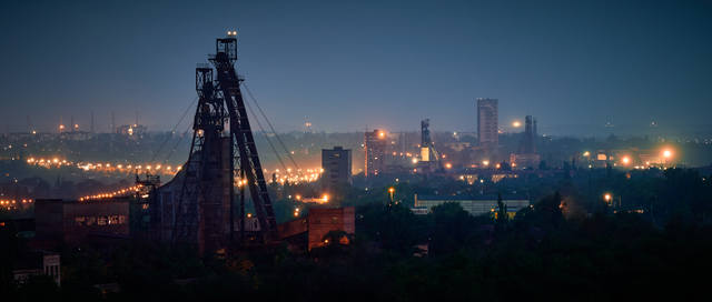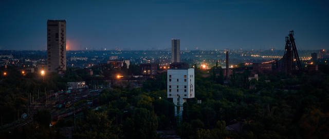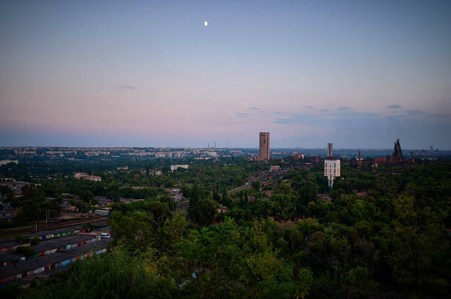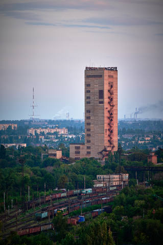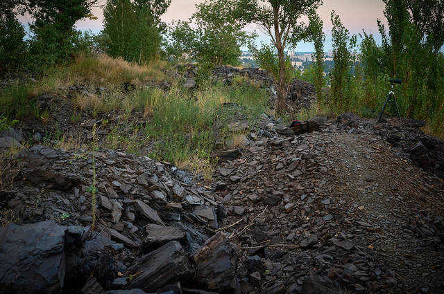 Начало быстро темнеть, так что с пристрелкой стоило поторопится. Вид на коппер шахты "Родина" и узловую грузовую ж/д станцию.