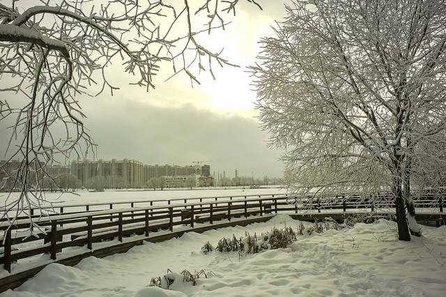 Японский сад "Шесть чувств",надо было туда попасть на пару часов попозже,снегопад повалил вообще шикарный