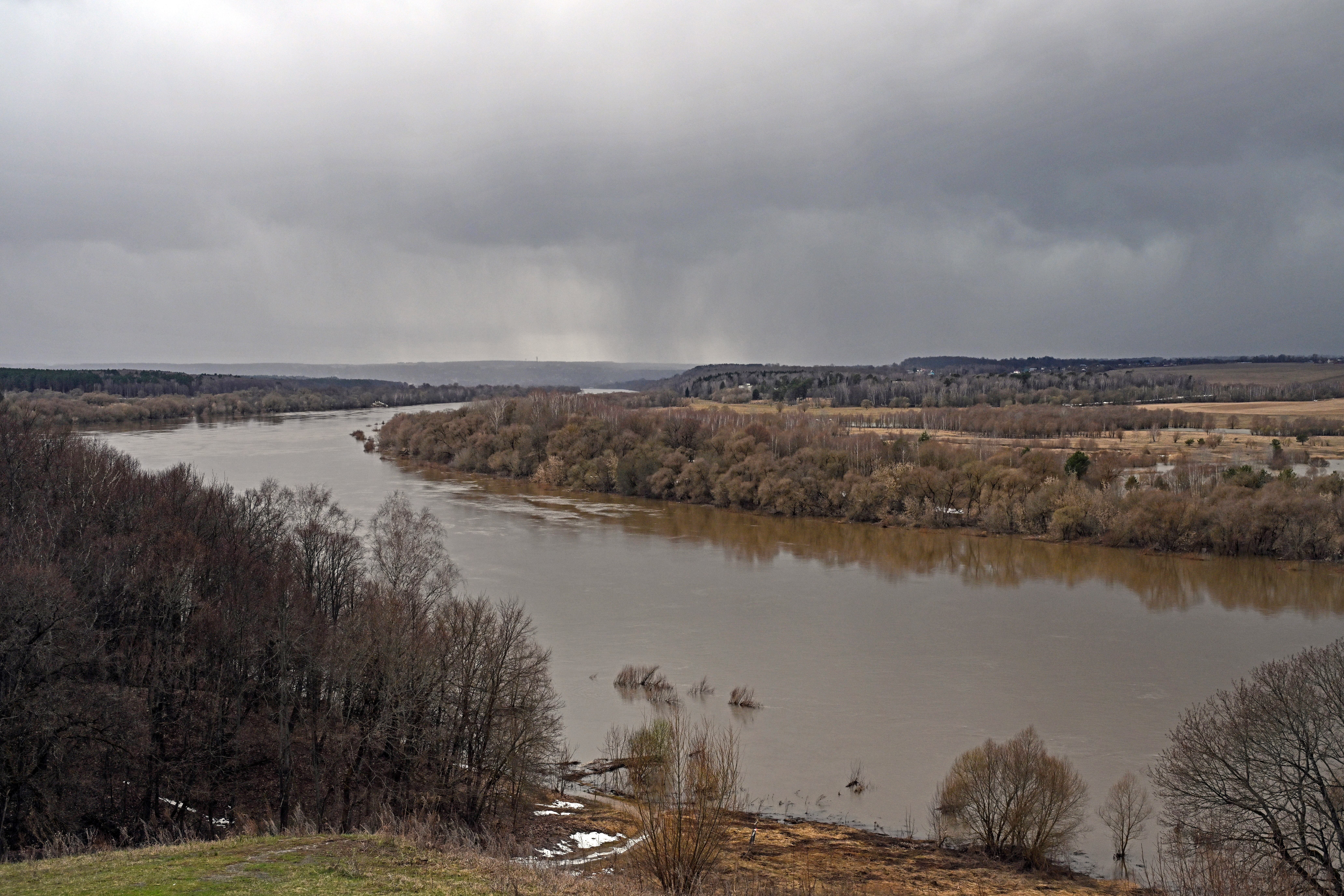 Заехал конечно и в Бехово, на любимый склон.. как сделал снимок, минут через 5 вся та бяка, что на горизонте над Тарусой прилетела к нам...с жутким воем и треском ломающихся деревьев..и кааак посыпался, толи снег ... толи град