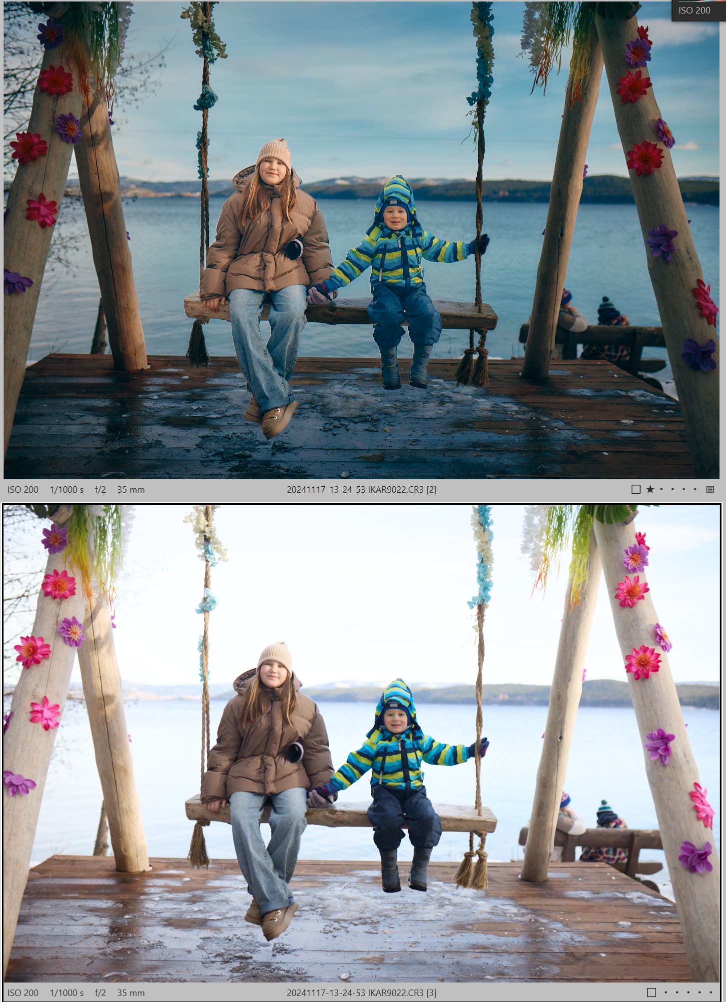Работая с РАВ, я б сделал небо как на втором фото, а землю - как на первом. Только намного точнее, поскольку большой экран и отсутствие лимита по времени.