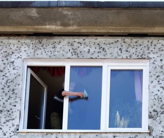 Мыл старушку на окне.
