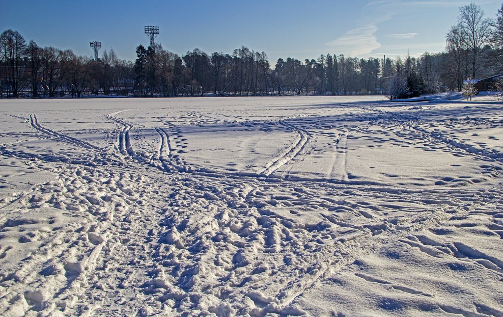 множество следов - только что там был какой-то праздник, люди только что ушли, чтобы завтра вернуться вновь, светит солнце - оптимистичная жизнеутверждающая деталь