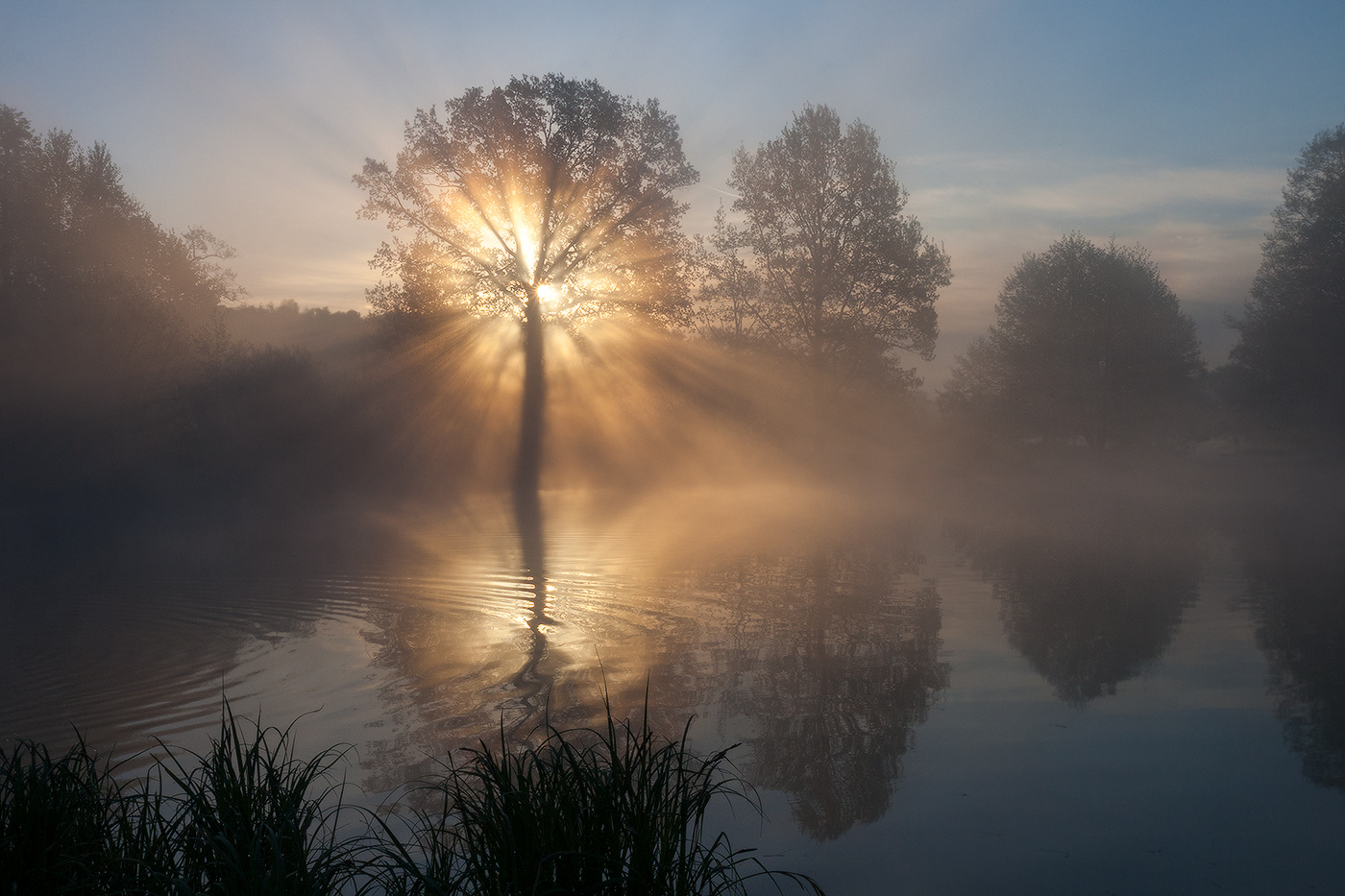 Солнце можно располагать и вне кадра, так, чтобы в кадр попали только лучи. Их тогда можно скомпоновать диагонально и заодно избежать пересветов.