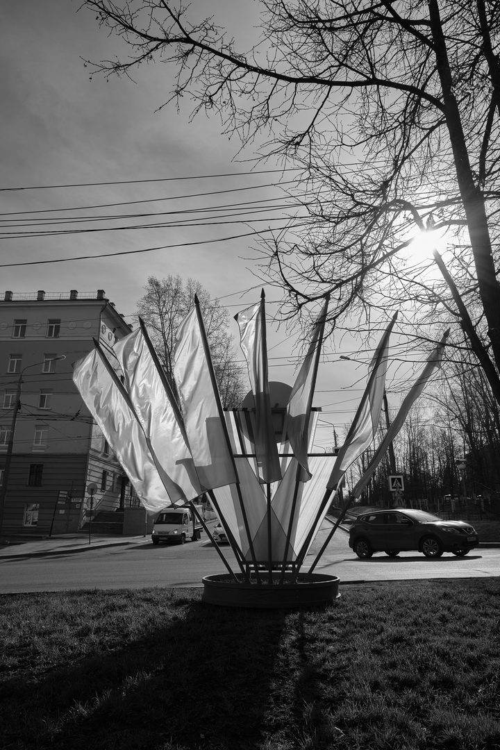 Евгений, из добрых побуждений пишу. Улицы, город - это трудная позиция. Тут что? Флаги перекрыли взгляд. Все, до них взор дошел и дальше не куда, тупик. Солнце сквозь ветки, провода не добавляют фотографии. В общем на мой взгляд на это фото вам ориентироваться не стоит. И еще, не гонитесь по количеству за Владимиром Федотовым. Он преимущественно выкладывает из архивов, то что наработано, а в них у него много много и хорошего. У меня к стати тоже эта привычка быстрей быстрей и на форум выложить.
