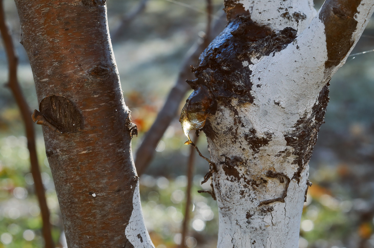 Канифоль сосновая. Это не сосна. Вроде на сливе что-то подобное встречается.