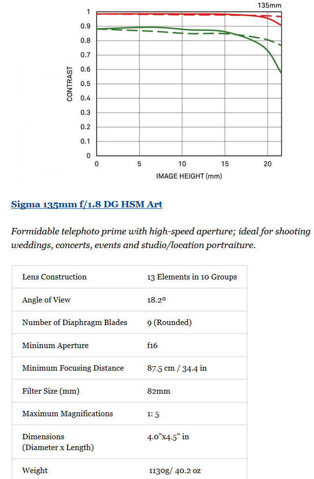 Sigma 135mm f/1.8 DG HSM Art full frame DSLR lens: