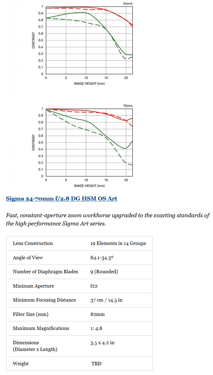 Sigma 24-70mm f/2.8 DG OS HSM Art full frame DSLR lens:
