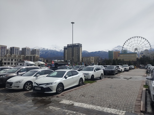 Машины едут со скоростью порядка 50-60км/ч ,у более дальней- бордовой (номер резкий) ,а у более ближней-серой ( номер чуть смазан) .