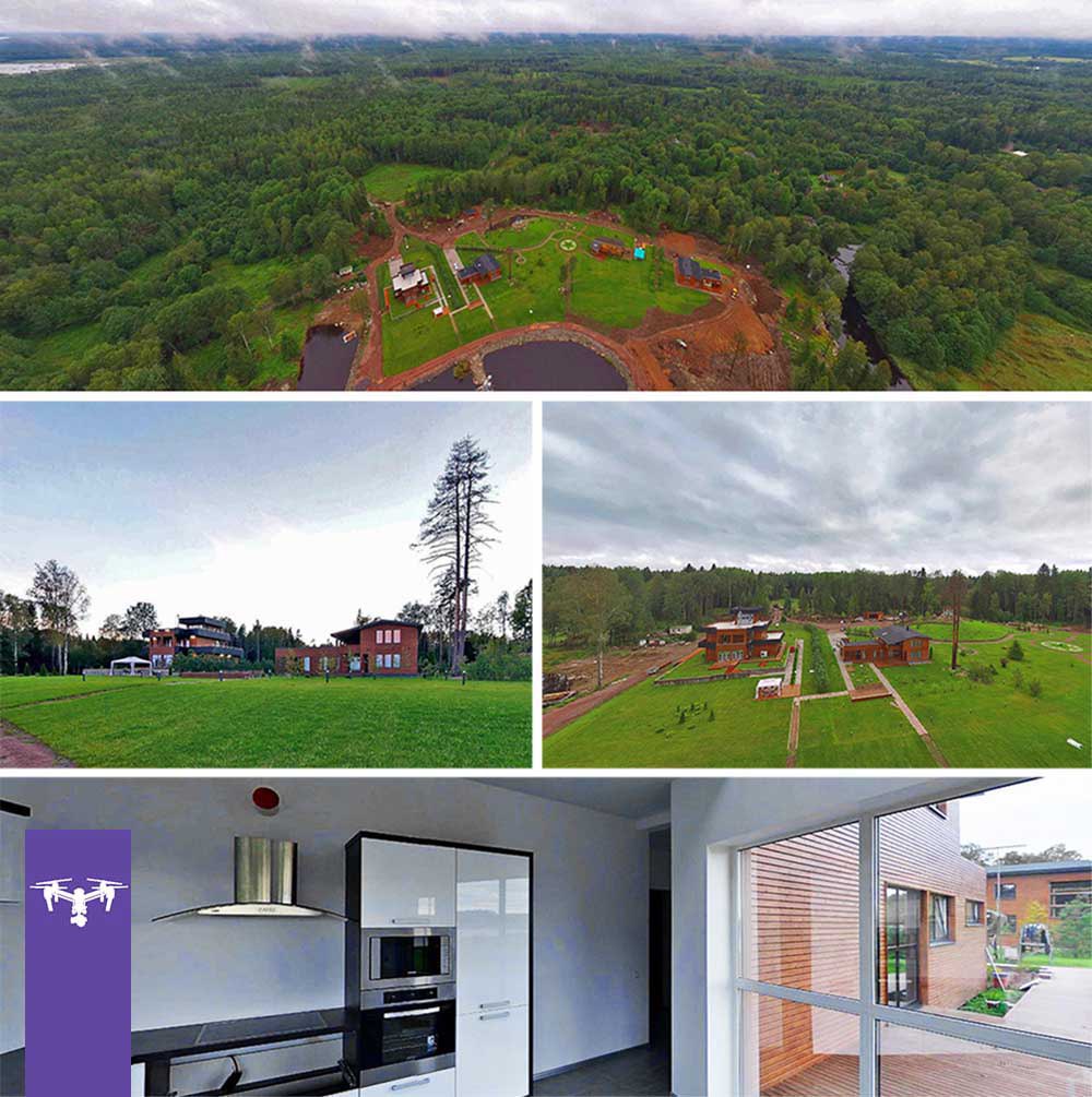 Аэрофотосъёмка (аэросъёмка) территории с высоты от десятков до сотен метров при помощи коптера, управляемого с земли.