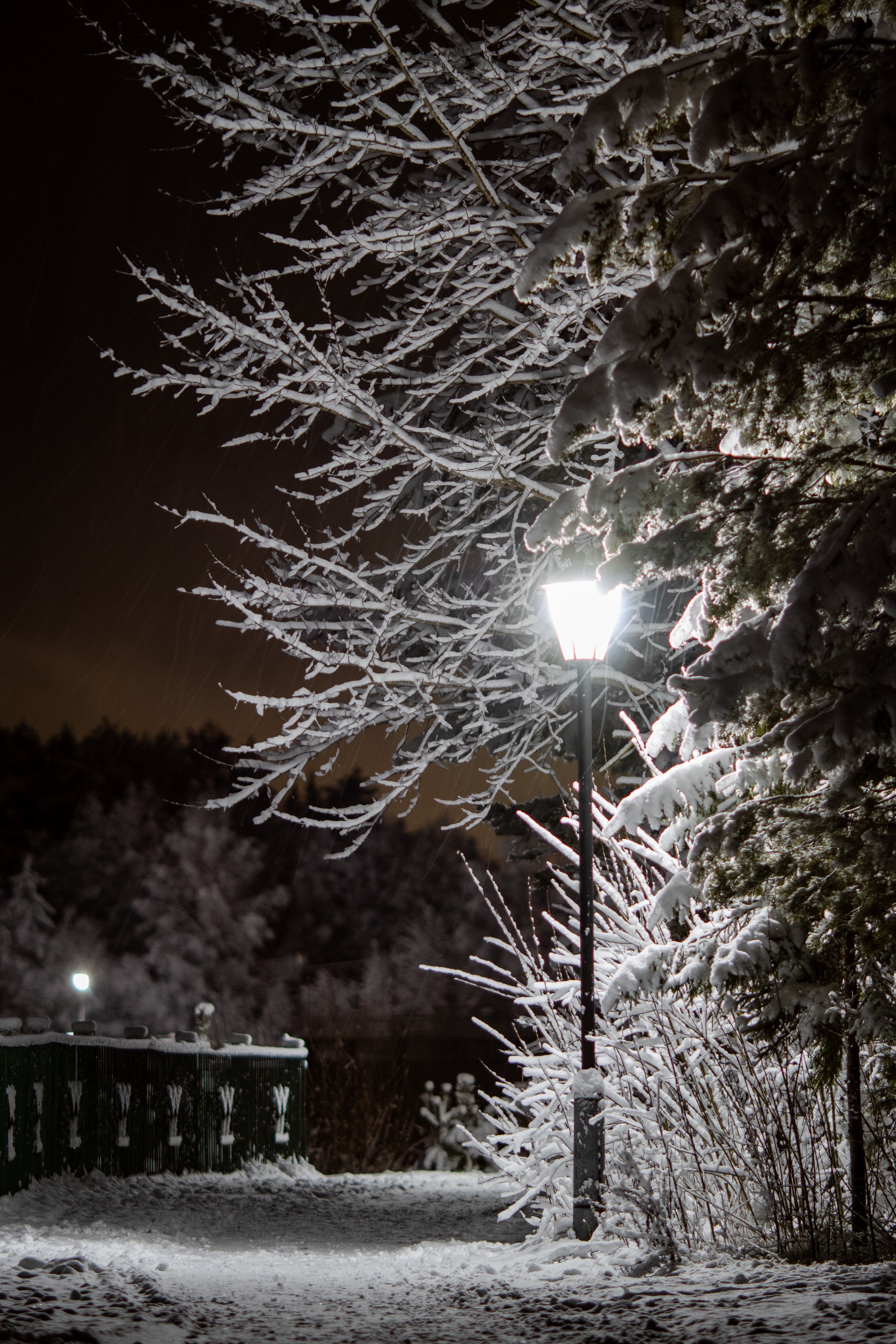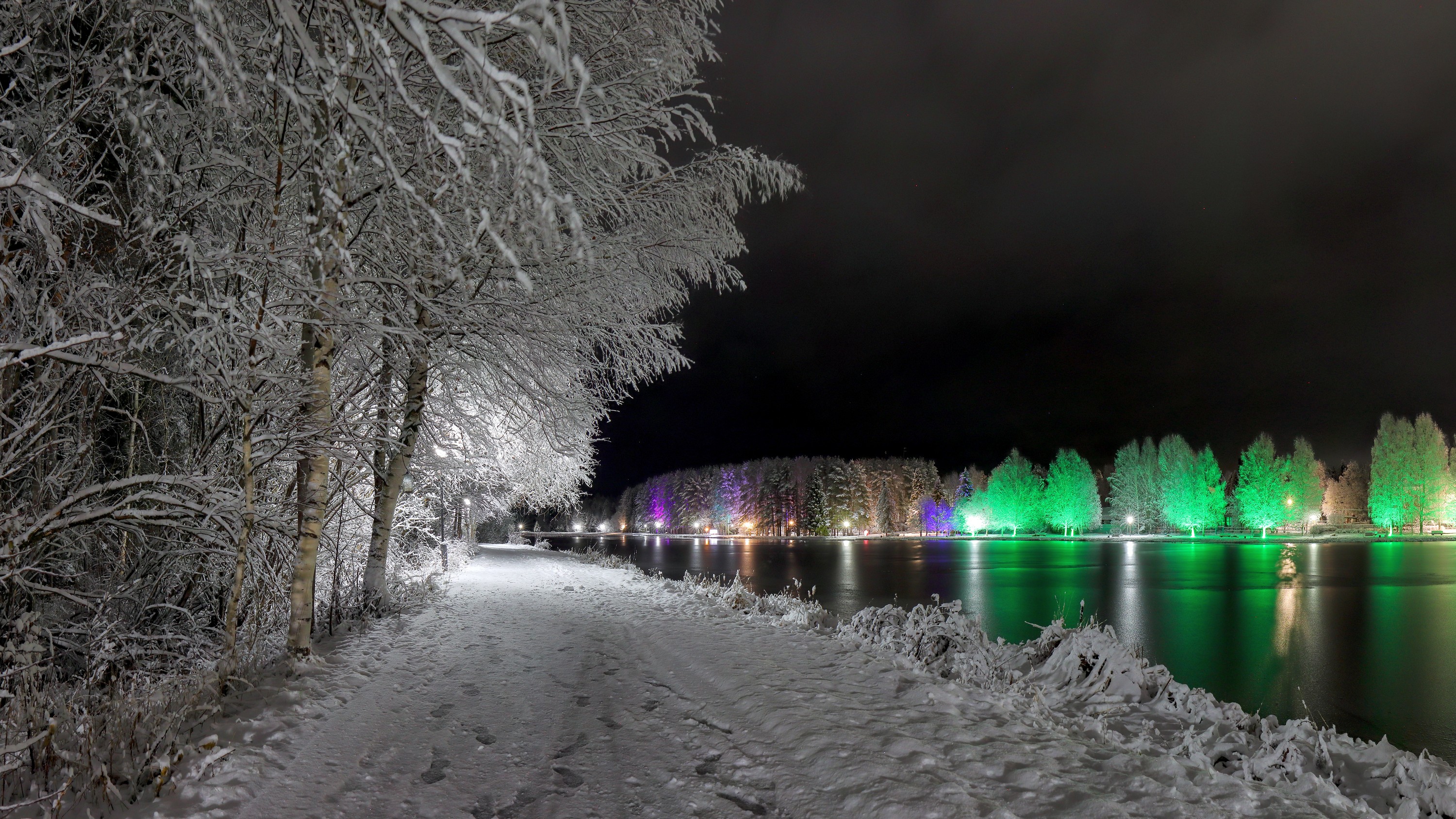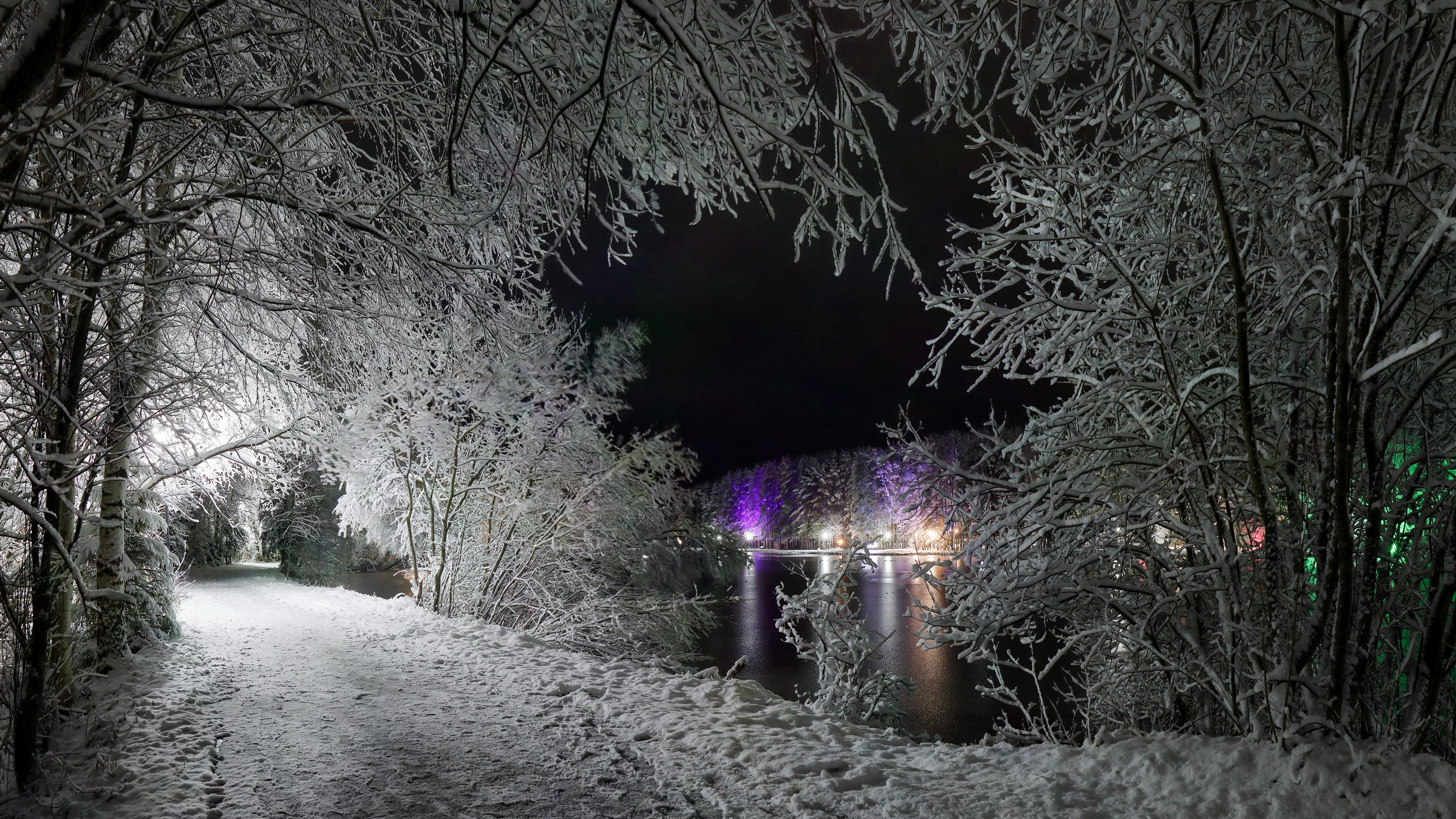 Панорамы тоже очень нравится снимать. Нас тут снежком присыпало в субботу. Не удержался, сходил посреди ночи на пруд.