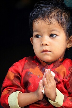 Непал. Ребенок ел кашу, когда мы подошли и стали его фотографировать (поэтому руки в каше :-)
