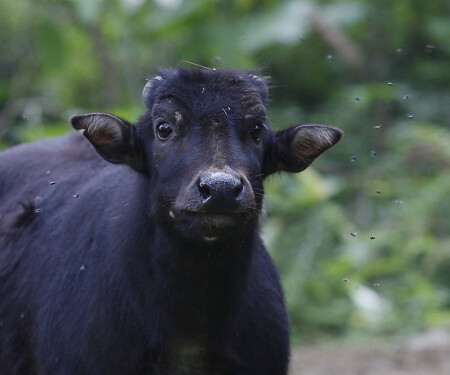 Аноа - самый мелкий вид быков. Размером с хорошего барана или крупную собаку. Живет на Сулавеси. Исчезающий вид. Однако, не смотря на это, мясо аноа можно купить даже на базаре. Индонезия-с!