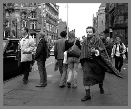 Шотландия. Эдинбург. Август 2005 года. Время фестивалей. Улицы полны туристов и актеров, продавцов и покупателей. Любопытствующая, разношерстная, шумная толпы. И даже в ней он выделился своей обособленностью, отстраненностью. Поношенный килт, плед, а в руках "Макбет"., что наталкивает на мысль - а может это актер "в образе"? Может да, а может нет. :))