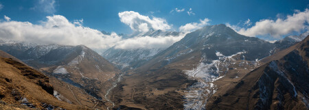Вид на Цейский хребет со смотровой площадки села Камунта. Северная Осетия-Алания